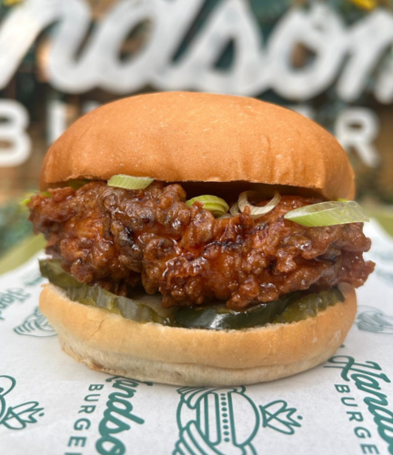 Buttermilk fried chicken, handsome pickles & honey coated scallions served on a potato roll.